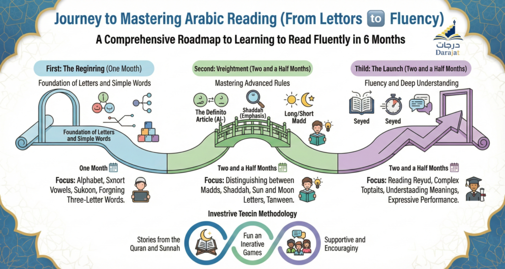Graduated programs for teaching Arabic reading, pronunciation, and comprehension, suitable for children and adults, and for non-native Arabic speakers, using a simplified and effective method.
